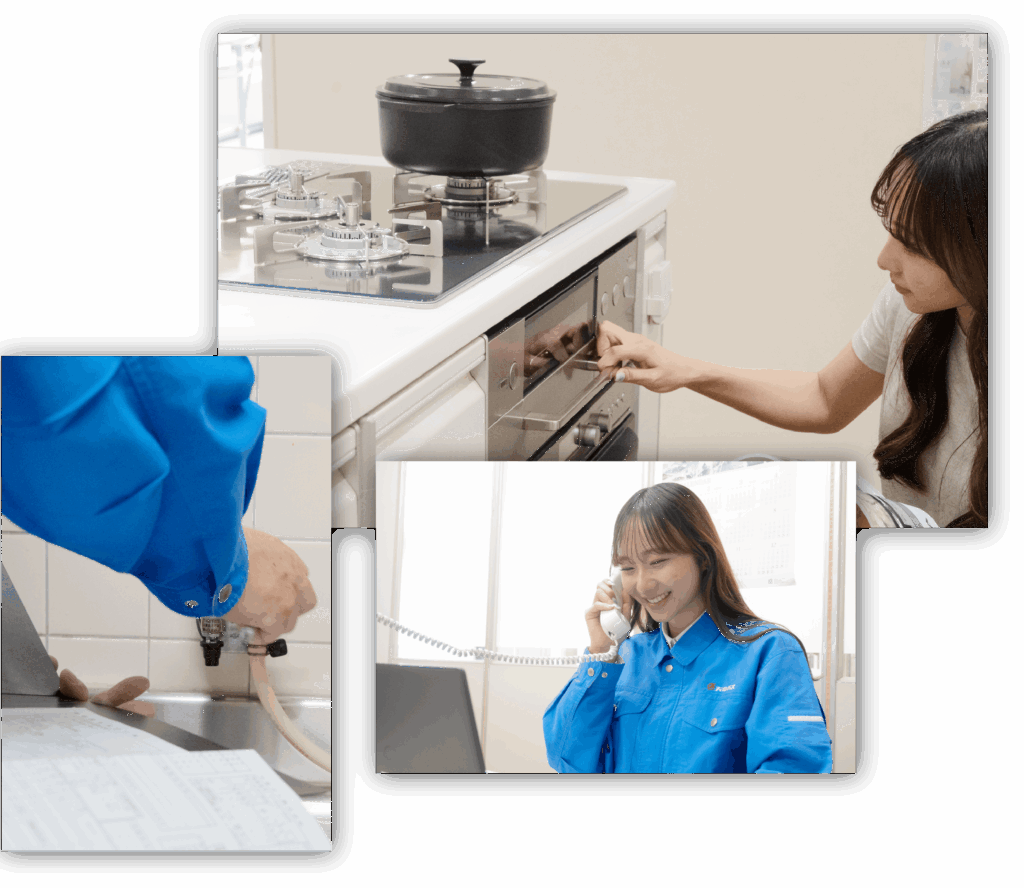 また、都市ガス設備工事からガス機器の選定、プランニング、安全なアフターサービスまで、充実したサービス体制でお客様のご相談にお応えしています。